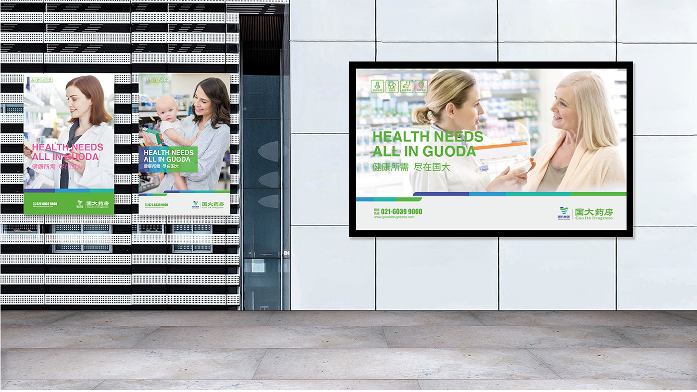 在引入戰投的背景下,協助國大藥房對品牌進行國際化轉型升級,主要解決兩個問題,一是如何避免品牌名稱變更造成品牌認知的差異,二是品牌驅動模式架構的選擇。對國大藥房品牌標志進行了更新,并設計制作出《國大藥房視覺識別系統手冊》,對視覺識別系統進行標準化的設計和規范,并負責宣傳片的策劃方案與籌備拍攝,提升國大藥房的公眾形象和品牌影響力。