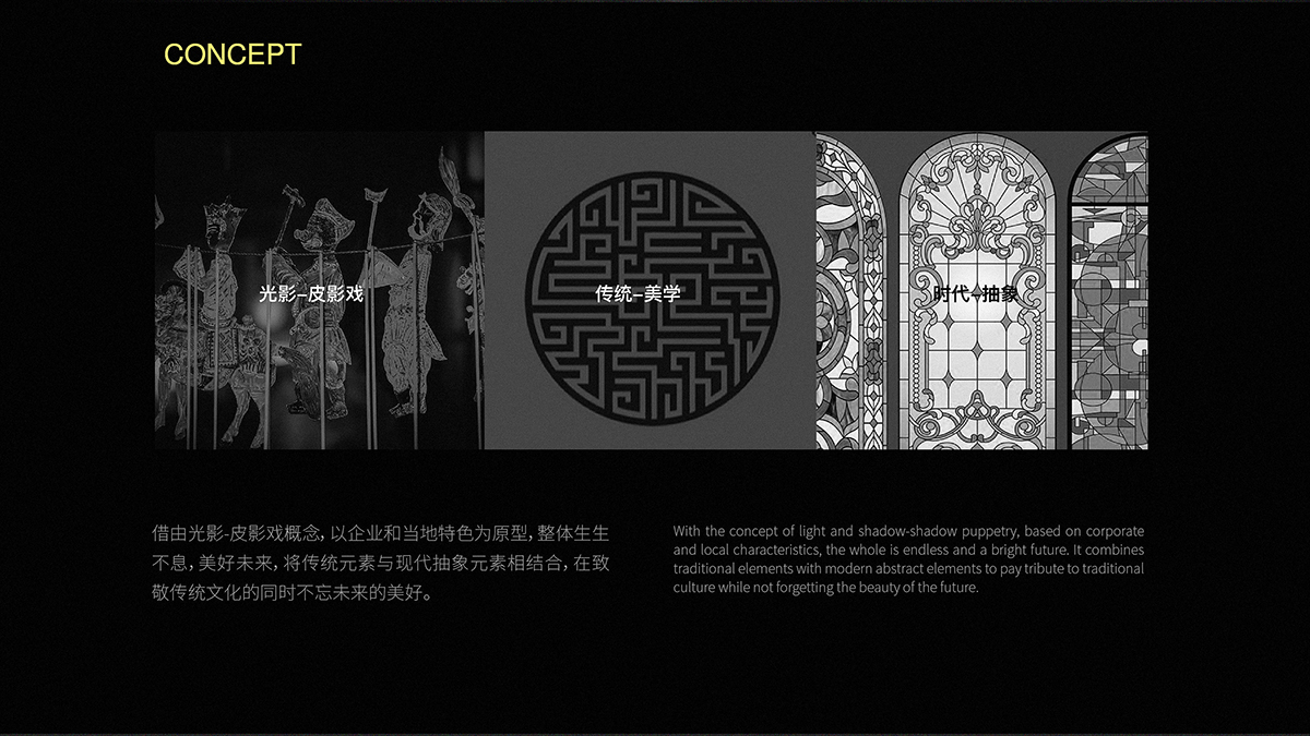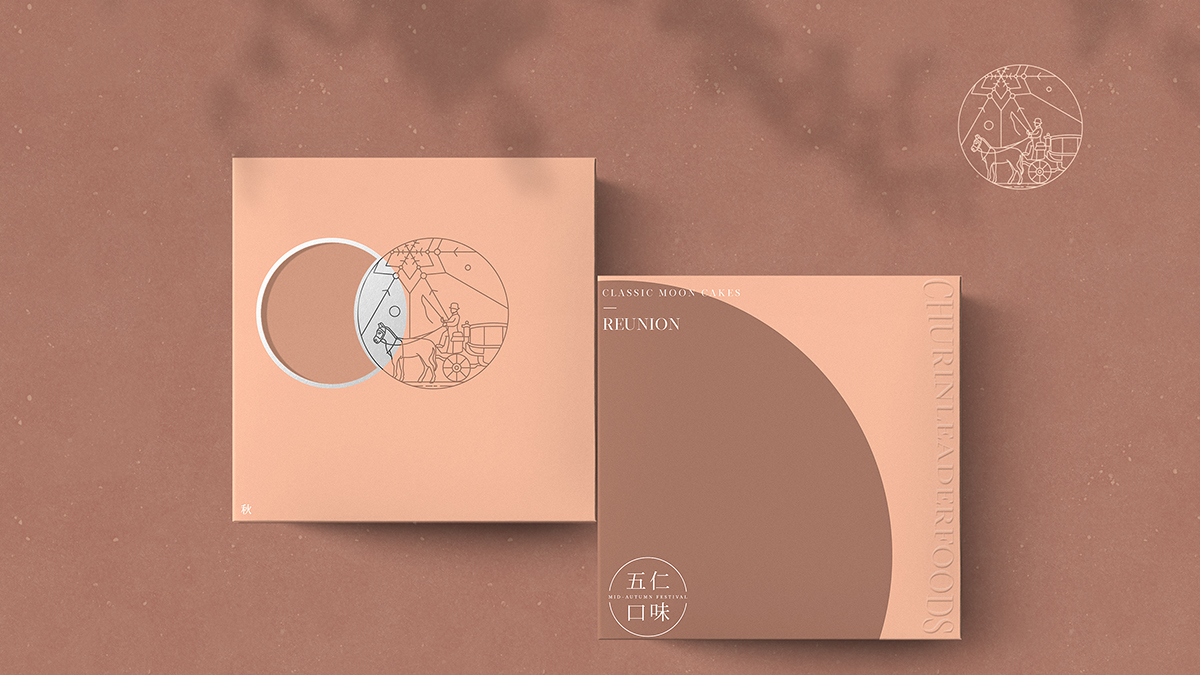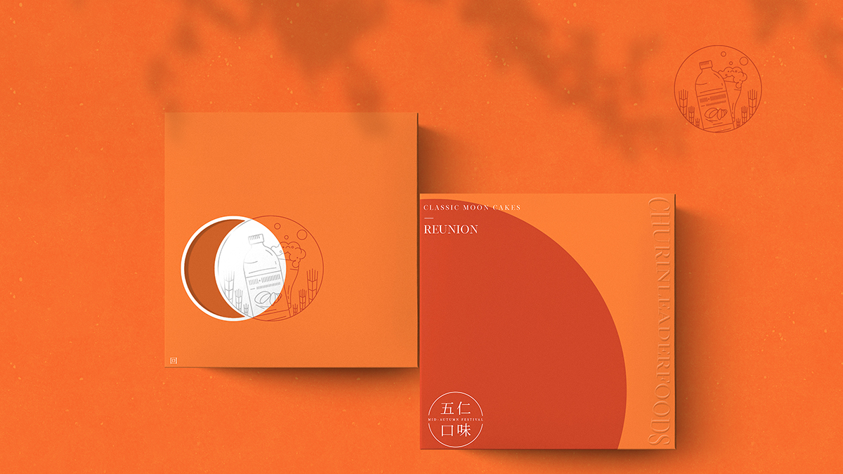 整體設(shè)計借由皮影戲的光影概念,將巴洛克風(fēng)格與傳統(tǒng)美學(xué)做結(jié)合,提取哈爾濱地域文化特色和秋林里道斯的代表元素,雕刻出一幅精美的畫面。將禮盒的八枚月餅取出,可拼成一幅表現(xiàn)中秋月亮盈虧的畫面,增強了禮盒的互動性。