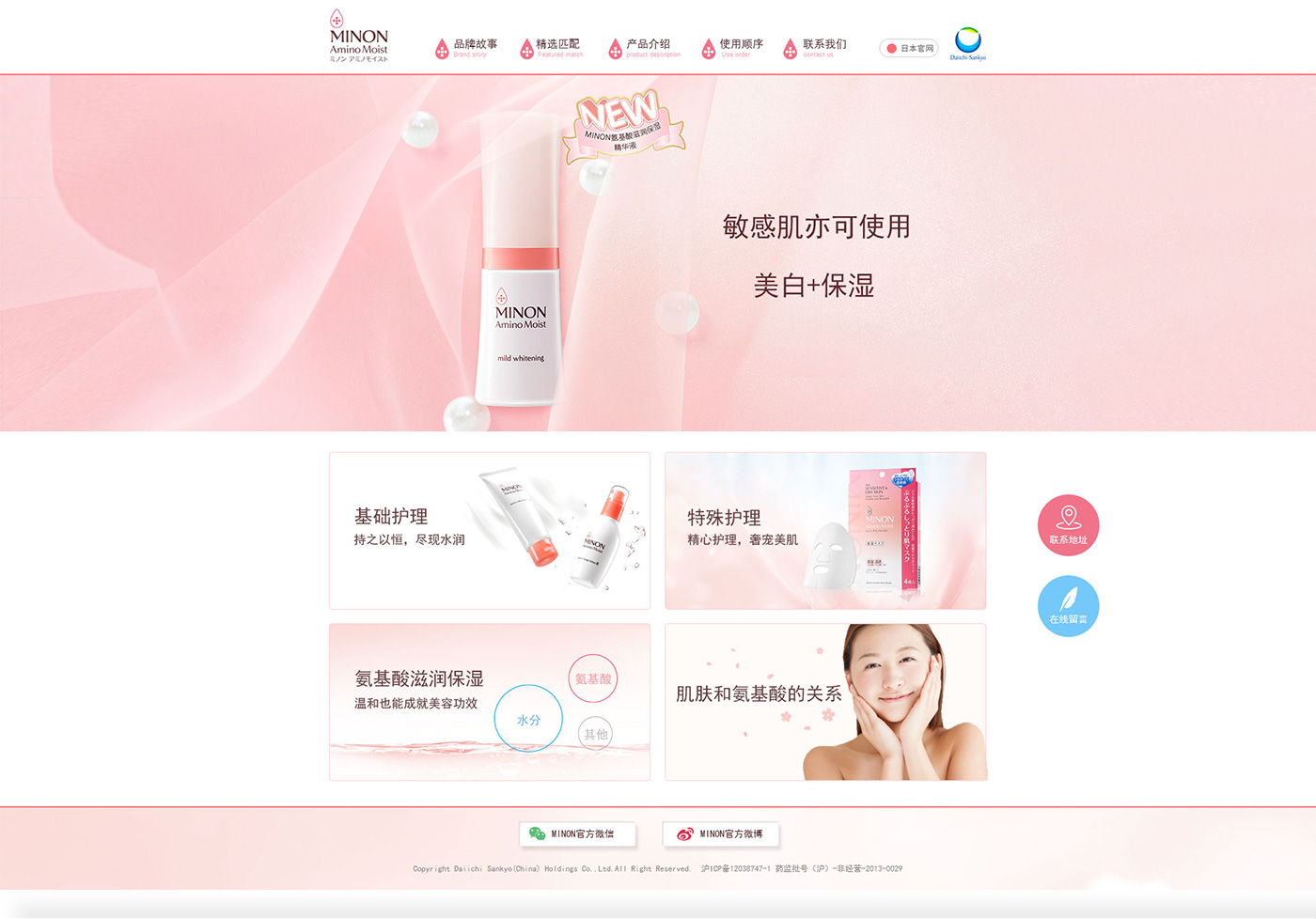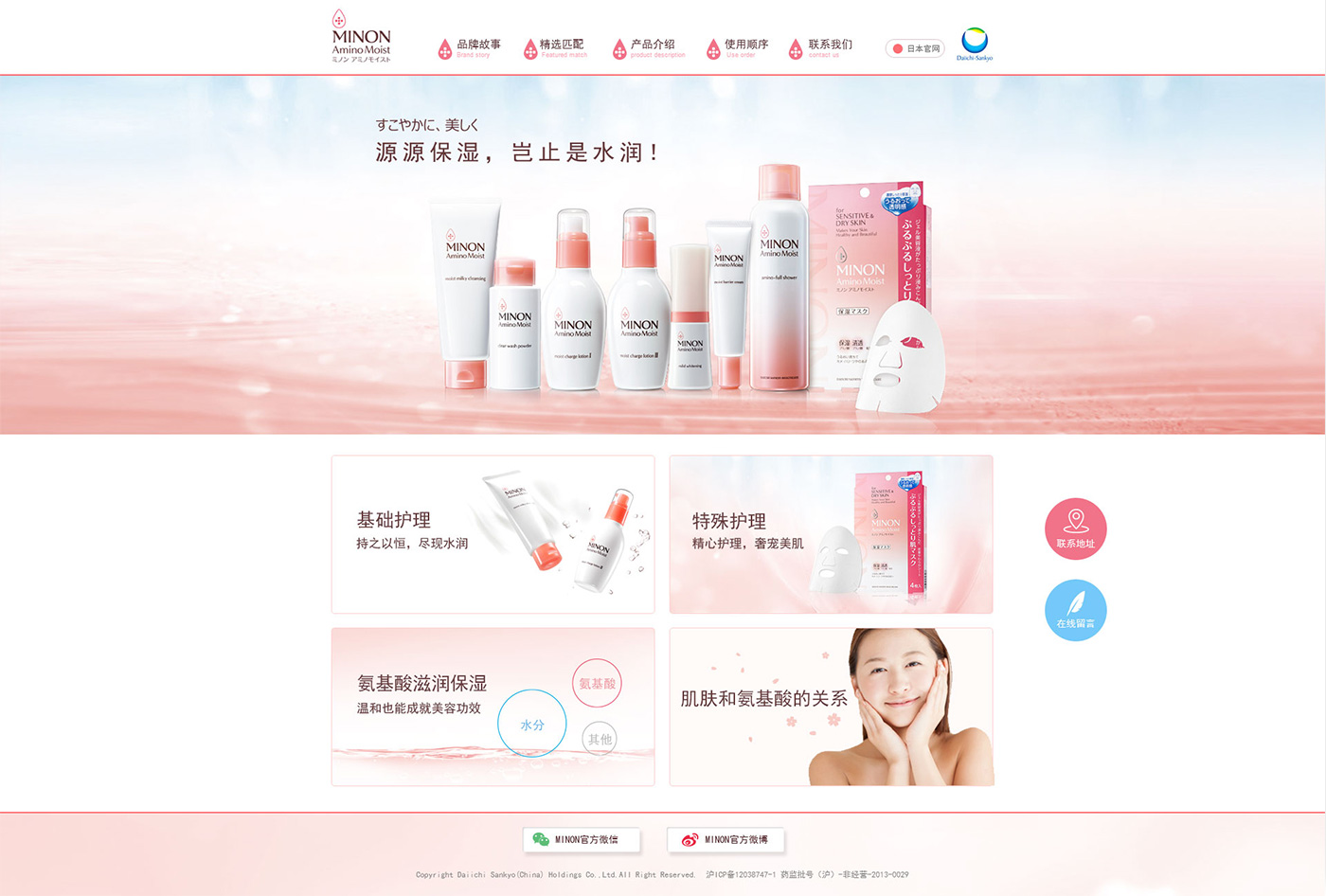 美容護膚是第一三共制藥公司旗下的品牌。以皮膚科學研究為基準,專門針對敏感肌干燥肌研發而成的低刺激性潔膚品牌。入了秋皮膚就不對了,干燥起皮,還容易發紅,最要命的是會長痘痘,皮膚敏感的時候用什么都感覺是負擔,但是不用更加嚴重,當宅人不知道該用什么的時候,就看見了美容護膚這個牌子,曾經看到很多美妝博主在推薦這個,不過那個時候沒有太在意,現在輪到自己皮膚敏感了一問度娘,推薦這個牌子的人真的是蠻多的,所以打算試試,不試不知道,一試嚇一跳。因為效果真的不錯,真的很想推薦給大家,所以宅人特地去他們官網看了看,做了一番深入研究!