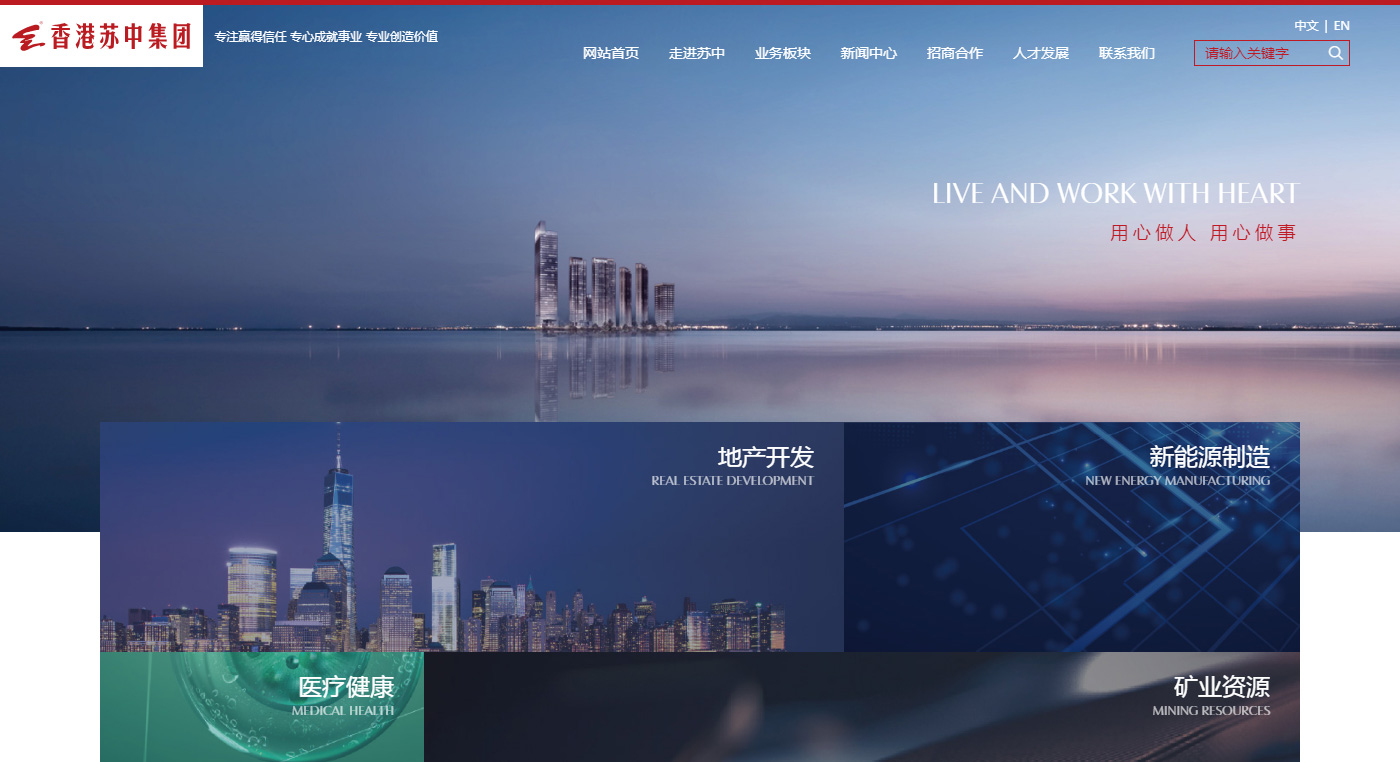 蘇中集團(tuán)官網(wǎng)改版,符合國內(nèi)用戶群體瀏覽習(xí)慣。 網(wǎng)站整體嚴(yán)謹(jǐn)和品牌色調(diào)體現(xiàn)出蘇中安全可靠,更具集團(tuán)特色。